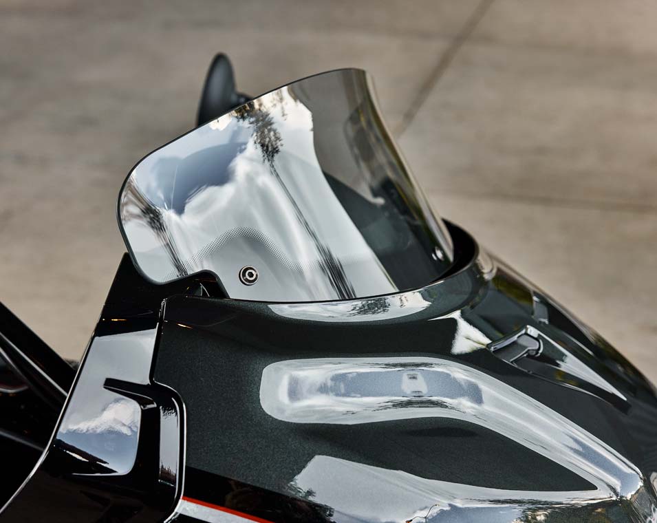 | Infotainment | 7 in touchscreen display powered by RIDE COMMAND with real-time clock; ambient air temperature; heading; audio information display; map/navigation; Bluetooth status for phone and headset; vehicle status (tire pressure, voltage, engine hours, oil change); vehicle info (speed, fuel range, RPM, gear position); current ride data (distance, moving time, stop time, altitude, altitude change); trip meters; ride mode selection; screen brightness; vehicle trouble code readout; Apple CarPlay integration. |