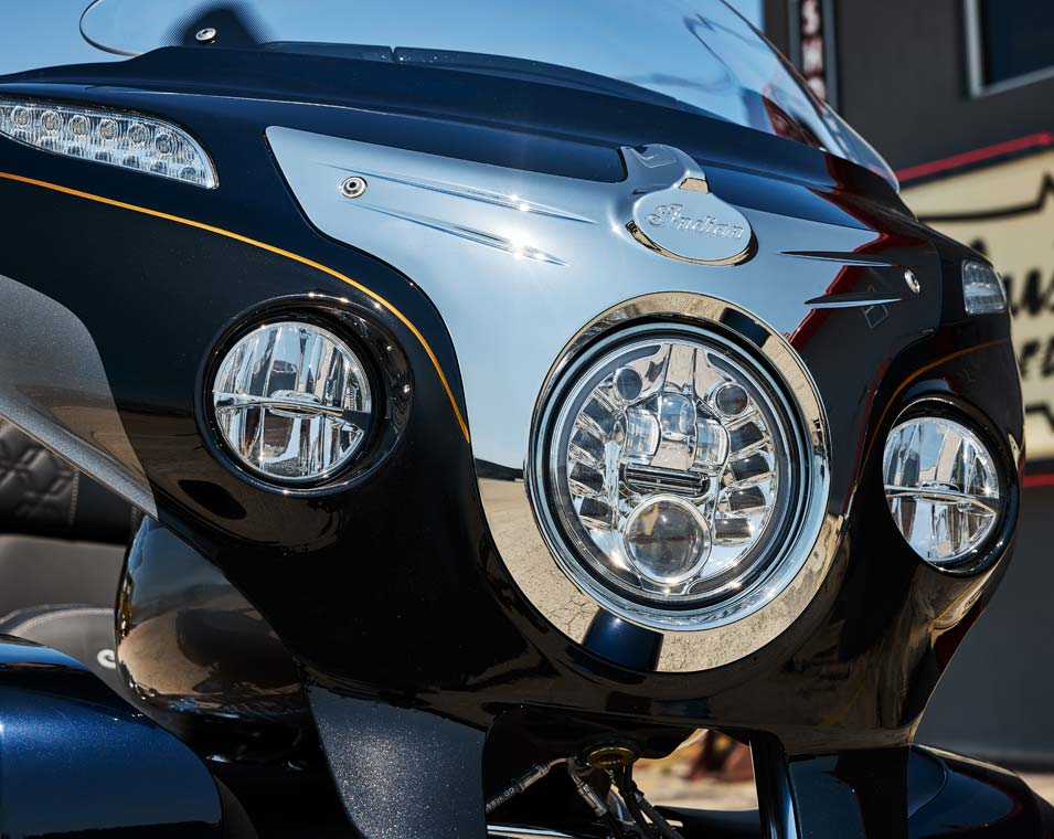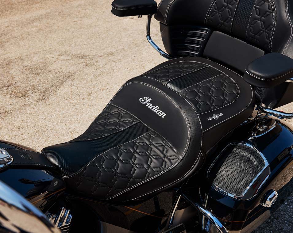 | Standard Equipment | 7" Display powered by RIDE COMMAND with Navigation and Apple CarPlay® integration; Power Windshield; Driving Lights; Highway Bars; Vinyl Seats (Separate Rider/Passenger Heat Controls); Heated Grips; Adjustable Passenger Floorboards; 36.2 Gallons of Storage; Tire Pressure Monitoring; Remote-locking Hard Saddlebags & Trunk; Selectable Ride Modes; Rear Cylinder Deactivation; ABS; Cruise Control; Keyless Ignition; 200 Watt Audio System with AM/FM, Bluetooth®, USB, Smartphone Compatible Input, and Weatherband; 12V Charging Port |