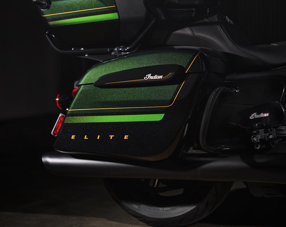 | Standard Equipment | Remote Locking Hard Saddlebags, Power Adjustable Windshield, 140+ Litres of Storage, Keyless Ignition, Adjustable Fairing Vents, USB Charger, Tyre Pressure Monitoring System (TPMS), Headdress Floorboards for Rider and Passenger, Green Colour-Matched Stitched Heated Seats, Backlit Switch Cubes with Heated Grips, Passenger Arm Rests, and Driving Lights |